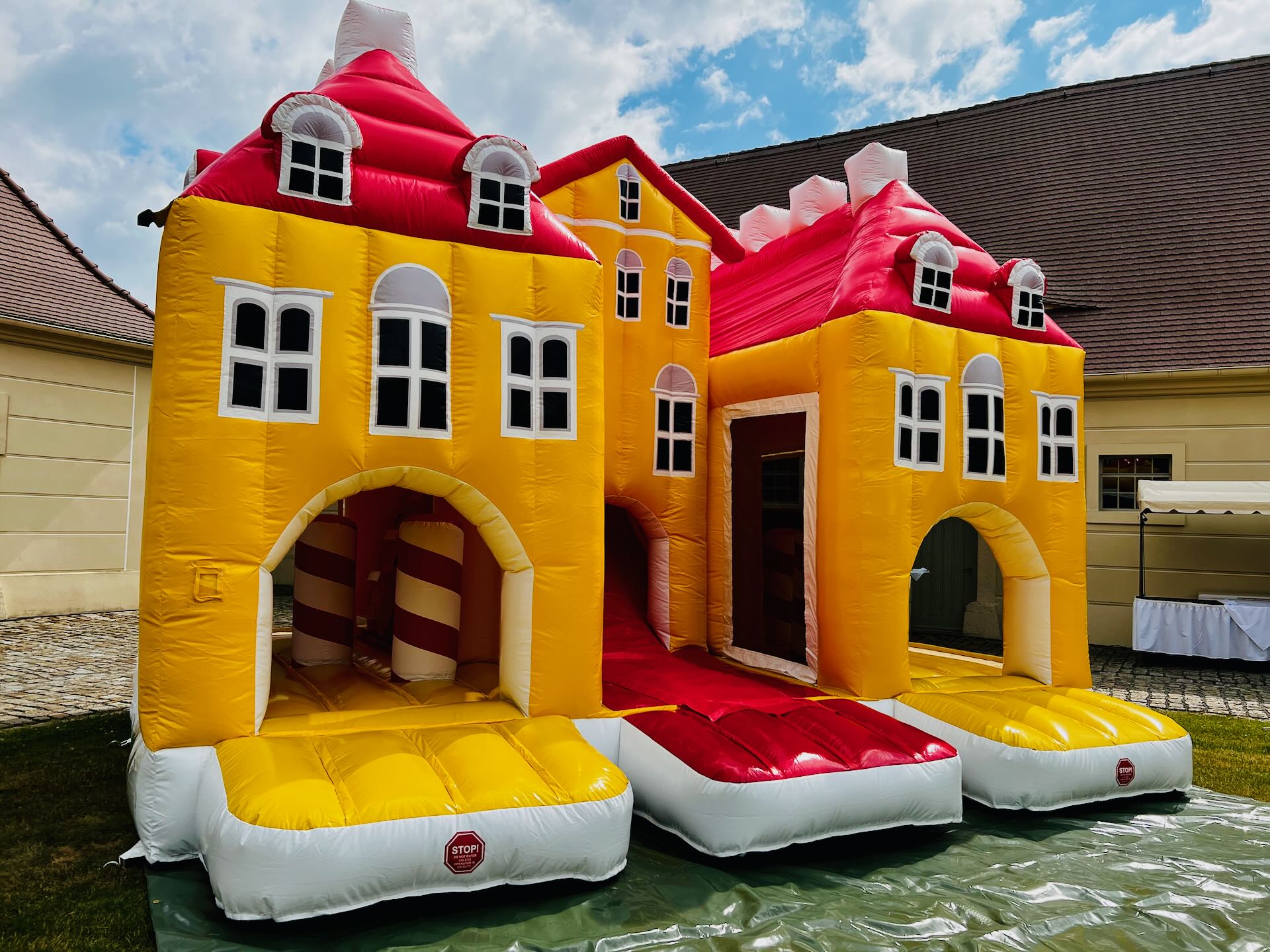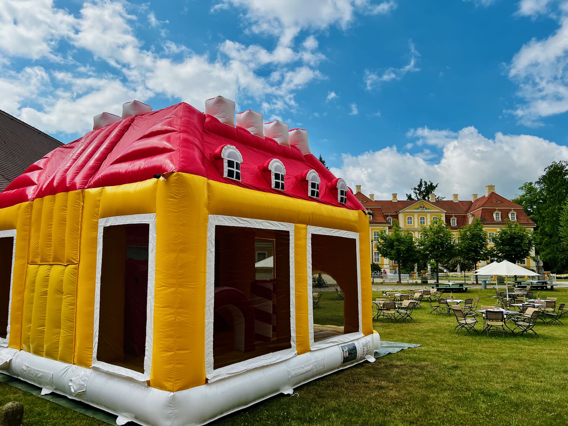 Tauche ein in die Welt des Barock mit unserer einzigartigen Hüpfburg Royal Palace – einem majestätischen Spielparadies, das den prachtvollen Schlössern der Region nachempfunden ist. Mit liebevollen Details, Türmchen und Ornamenten versprüht sie den Charme vergangener Zeiten und bietet gleichzeitig moderne Action für Kinder jeden Alters.